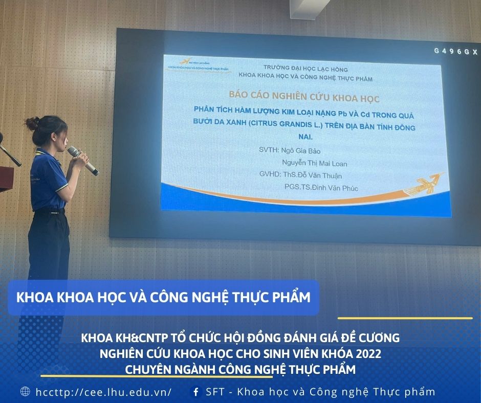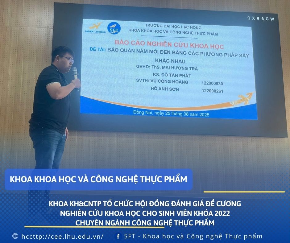 Ngày 5/9/2025, Khoa Khoa học và Công nghệ Thực phẩm, Trường Đại học Lạc Hồng đã tổ chức buổi bảo vệ đề cương nghiên cứu khoa học cho sinh viên khóa 2022, chuyên ngành Công nghệ thực phẩm.