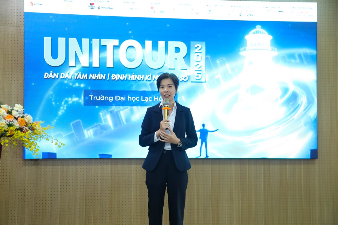 Chiều 03/10/2025, Trường Đại học Lạc Hồng sôi động với Unitour 2025. Trong không khí trẻ trung và sáng tạo, Unitour 2025 - chuỗi hoạt động thuộc Cuộc thi Sinh viên Kinh doanh số (Digital Business Contest) do Hiệp hội Thương mại điện tử Việt Nam (VECOM) tổ chức - đã mang đến một “làn sóng mới” về tri thức số cho hơn 400 sinh viên nhà trường.
