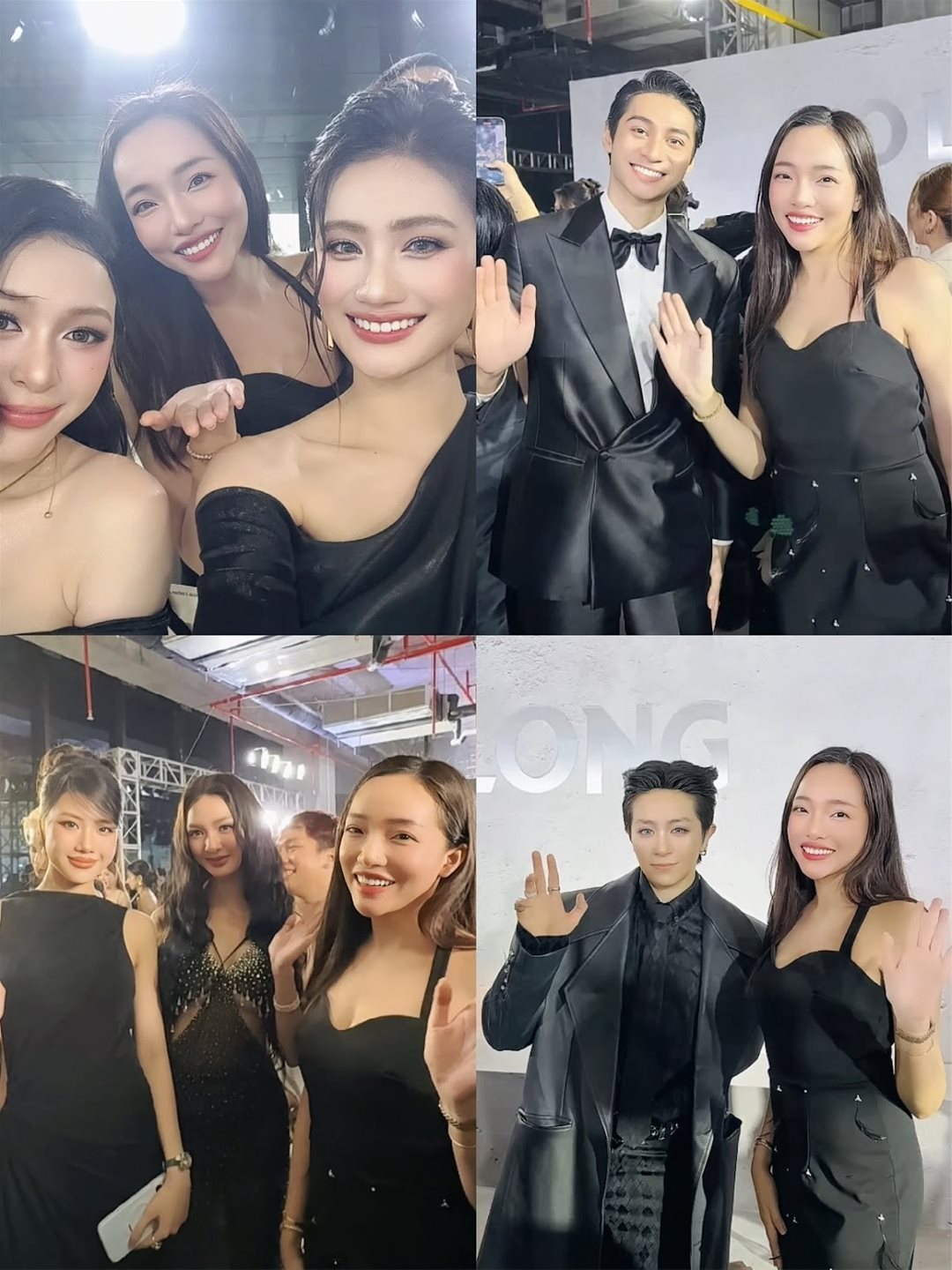 Cô Như Ngọc chụp ảnh kỷ niệm cùng với các hoa hậu, nam vương và ca sĩ.
