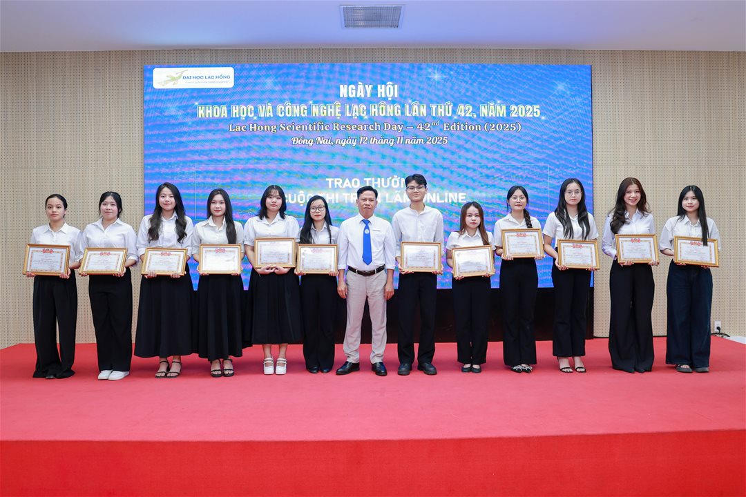 Căn cứ Quyết định số 1601/QĐ-ĐHLH và 1613/QĐ-ĐHLH do Hiệu trưởng Trường Đại học Lạc Hồng ký vào đầu tháng 11 năm 2025, Khoa Quản trị - Kinh tế Quốc tế đã ghi nhận những kết quả tích cực tại Ngày hội Khoa học và Công nghệ lần thứ 42. Điểm nhấn của kỳ nghiên cứu này là sự đồng đều ở cả hai hạng mục Báo cáo và Triển lãm, với thành tích cao nhất thuộc về nhóm sinh viên Mai Vũ Thanh Trúc và Đỗ Thanh Hà (lớp 22QT111). Dưới sự hướng dẫn của ThS. Phan Thị Hời, nhóm đã xuất sắc đạt Giải Nhất hạng mục Báo cáo với đề tài về ý định mua sản phẩm thân thiện môi trường.