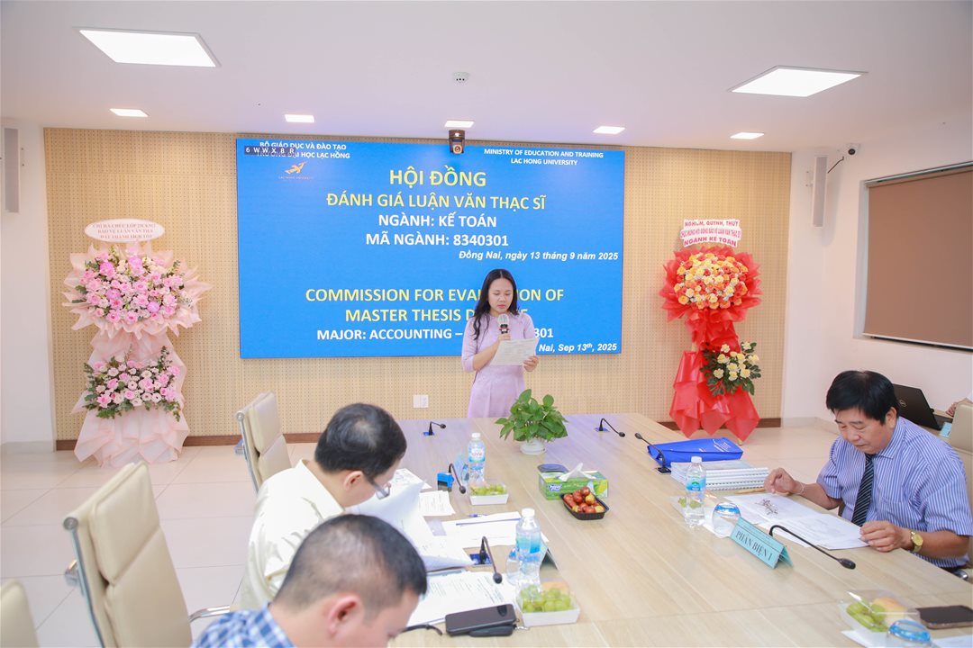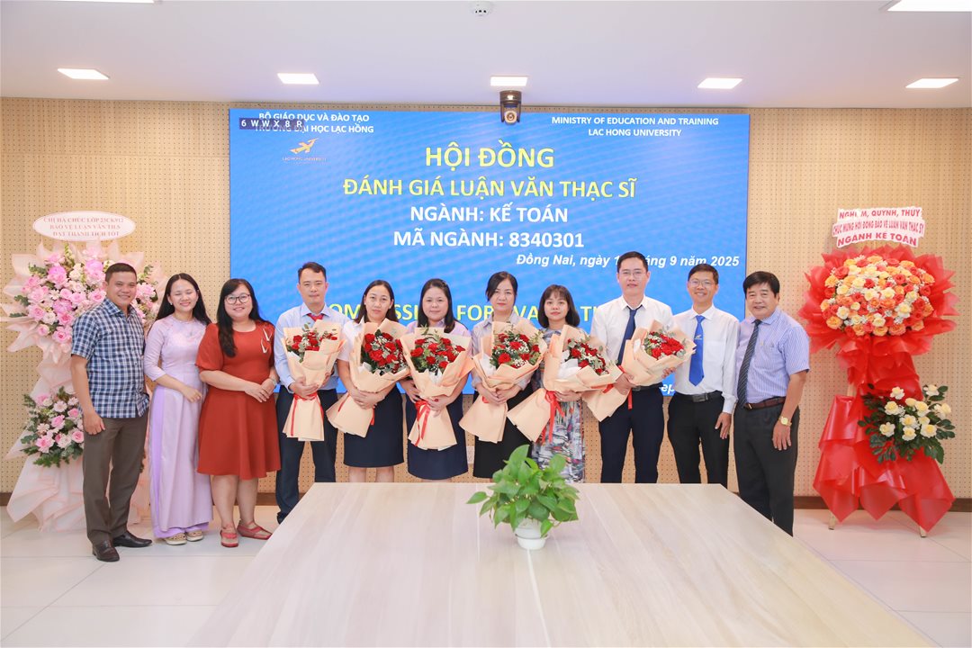 Ngày 13 tháng 09 năm 2025, tại phòng họp cơ sở 1 của Trường Đại học Lạc Hồng (LHU), 06 học viên ngành Kế toán đã hoàn thành và bảo vệ luận văn thạc sĩ của mình. Buổi bảo vệ diễn ra trong không khí trang trọng và đầy tính học thuật, đánh dấu một bước ngoặt quan trọng trong hành trình học tập và nghiên cứu của các học viên.