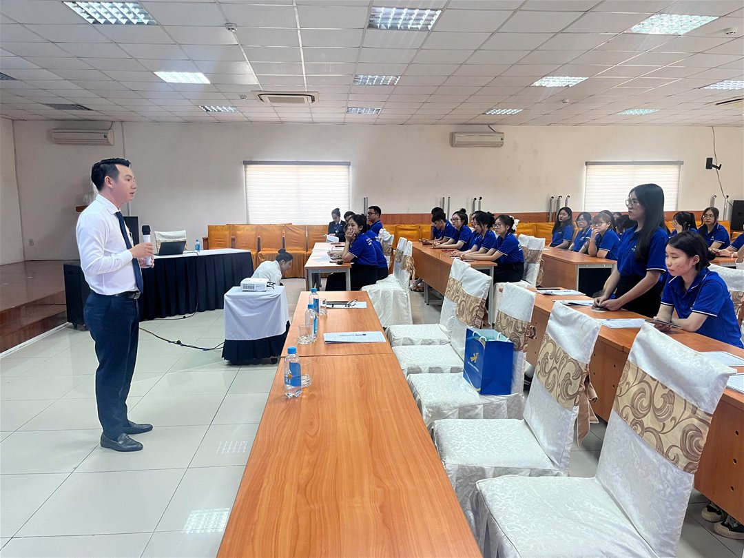 Tại buổi tham quan, sinh viên đã được đại diện Sacombank giới thiệu khái quát về lịch sử phát triển, cơ cấu tổ chức và các dịch vụ tài chính – ngân hàng hiện có. Đặc biệt, các em còn được lắng nghe những chia sẻ thiết thực về cơ hội thực tập, việc làm và định hướng nghề nghiệp trong tương lai.