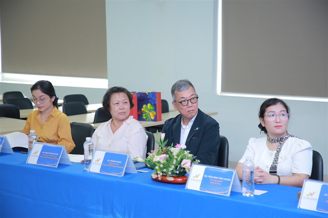 Về phía Nhà trường, buổi gặp gỡ có sự tham dự của NGƯT.TS. Nguyễn Thị Thu Lan – Phó Hiệu trưởng; ThS. Nguyễn Thị Như Thường – Phó Trưởng khoa Đông phương học; TS. Lê Thị Thu Hương – Trưởng khoa Khoa học & Công nghệ Thực phẩm; ThS. Lê Hoàng Anh – Phó trưởng khoa Cơ điện – Điện tử; ThS. Nguyễn Hải Quân – Trưởng Bộ phận Quan hệ Doanh nghiệp và ThS. Trần Minh Thùy Dương – Trưởng ngành Nhật Bản học.